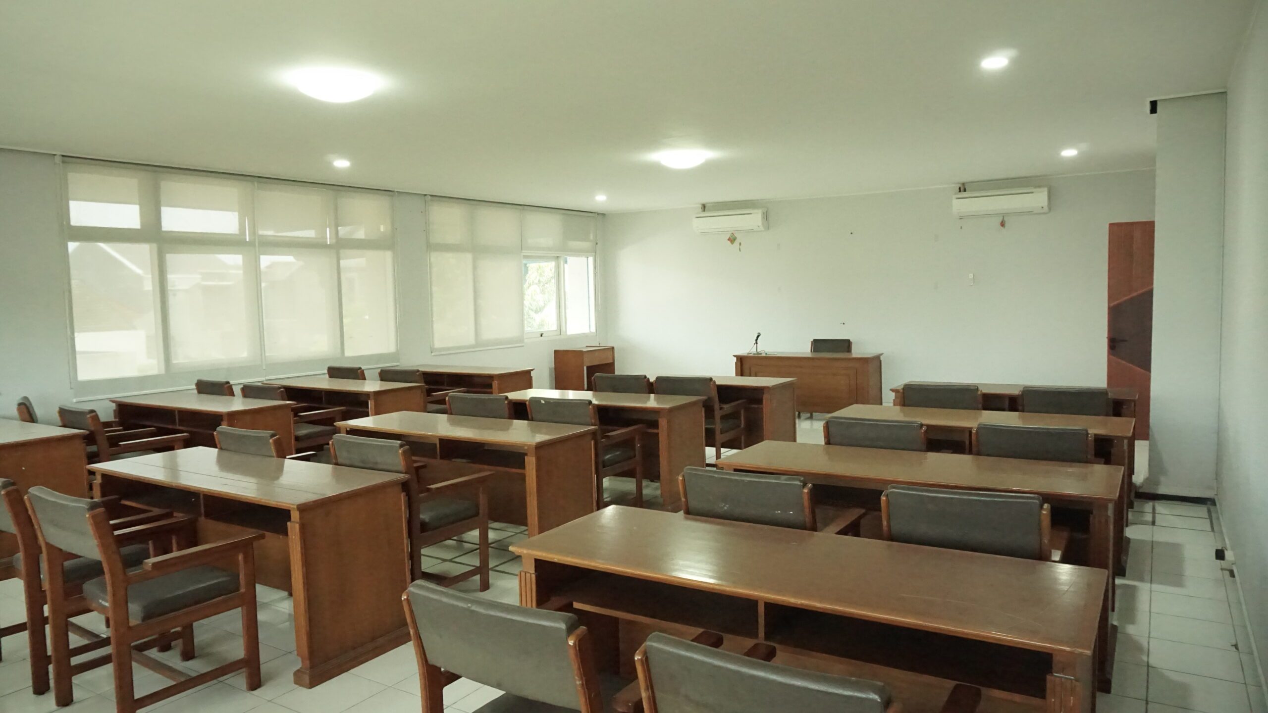 Ruangan Aula cukup luas, bersih dan cahaya ruangan cukup terang, penyejuk udara cukup baik, sound system cukup baik, suasana kelas nyaman,